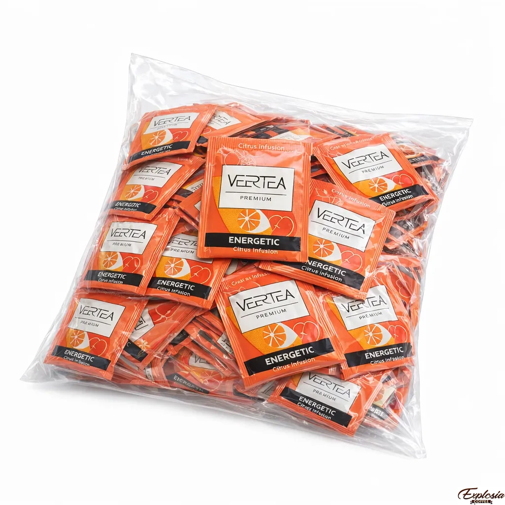 Cytrusowe składniki zawarte w herbacie Veertea są naturalnym źródłem witaminy C i antyoksydantów. Pomagają wspierać układ odpornościowy, szczególnie w okresach osłabienia organizmu czy sezonowych infekcji, 200 indywidualnie zamkniętych saszetek w szczelnych kopertach to praktyczne rozwiązanie do domu, biura czy lokali gastronomicznych – zawsze masz pod ręką ulubiony smak.