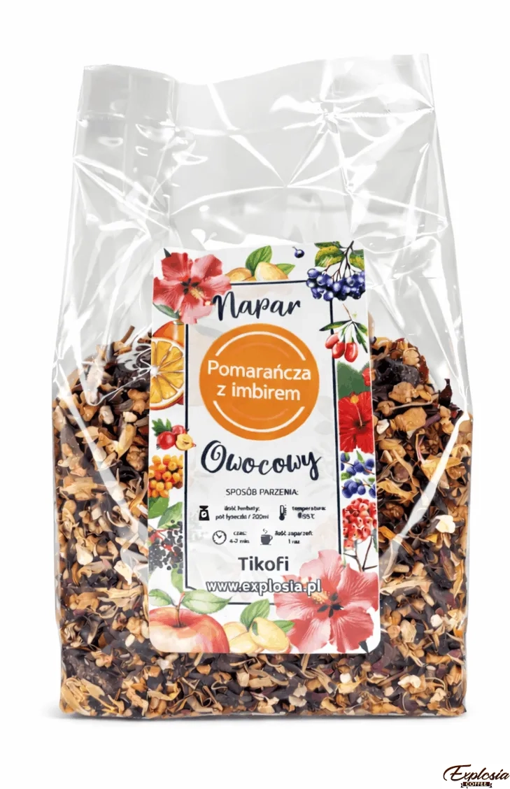 Napar Owocowy Pomarańcza z imbirem Tikofi to codzienna dawka naturalnej radości zamknięta w aromatycznej kompozycji.